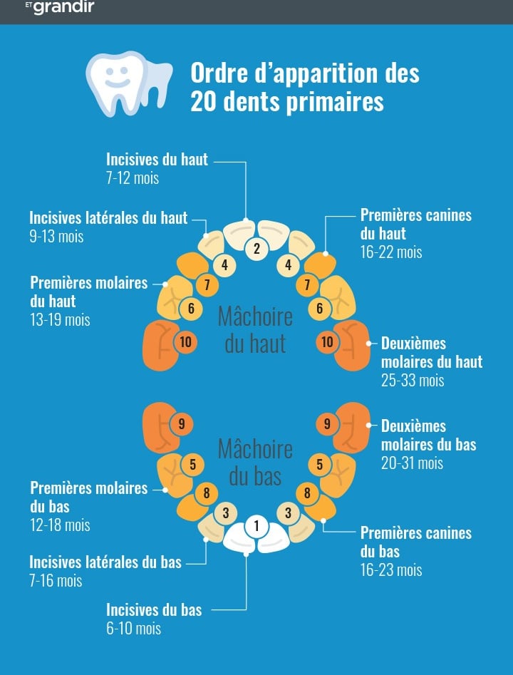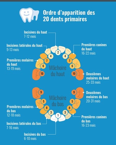 Voici un guide approximatif du calendrier d'apparition des dents :